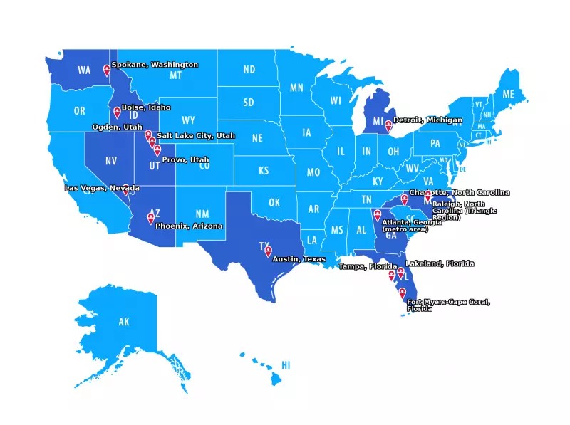 Austin appears high on overvaluation rankings, with premiums around 68% over trend-based valuations. The region's rapid tech-sector expansion, strong job market, and national profile as a high-growth innovation hub brought a major influx of new residents, especially during the pandemic years.
